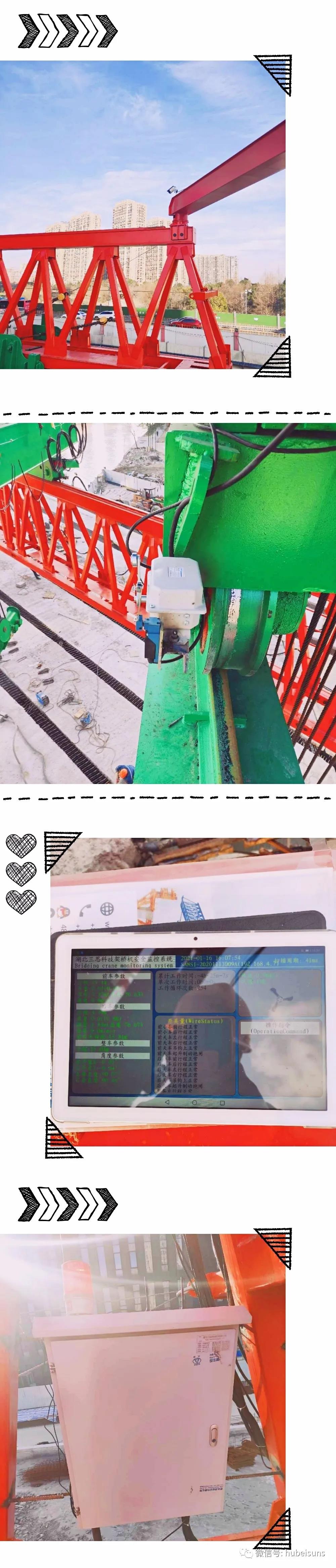 該架橋機(jī)屬于大型建設(shè)運(yùn)架設(shè)備,在此次項(xiàng)目中起著極為重要的作用,設(shè)備的安全運(yùn)行當(dāng)屬重中之重??蛻?hù)為架橋機(jī)選擇了對(duì)各個(gè)工作環(huán)節(jié),各個(gè)安全點(diǎn),各類(lèi)工況,各類(lèi)指令的綜合性的安全監(jiān)控系統(tǒng),用來(lái)保證起重設(shè)備的安全運(yùn)行,操作人員的安全,提高工作效率,降低安全隱患。湖北三思科技的架橋機(jī)安全監(jiān)控系統(tǒng)由傳感器、信號(hào)采集器、控制執(zhí)行器、顯示儀表、監(jiān)控系統(tǒng)等組成,將顯示、控制、報(bào)警、視頻監(jiān)控等功能集合一體。為適應(yīng)架橋機(jī)械安全動(dòng)態(tài)監(jiān)管的要求,提高安全監(jiān)測(cè)效率和可靠的檢測(cè)技術(shù),以及開(kāi)展壽命預(yù)測(cè)、安全評(píng)定、風(fēng)險(xiǎn)評(píng)估、應(yīng)急搶險(xiǎn)、事故分析等提供基礎(chǔ)信息。